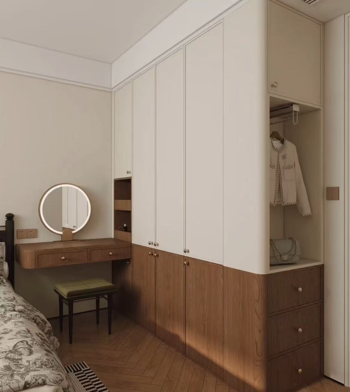 衣柜是卧室里不可或缺的收纳担当,负责收纳我们的衣物、被褥等物品,让卧室保持整洁有序。衣柜的选择要根据卧室的布局和收纳需求来定。